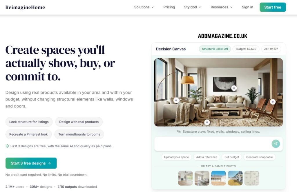 Another honored member of the rating is ReimagineHome.ai. This service has a wide range of functions for image work and interior design. The main advantages are a variety of design styles, a user-friendly interface, and deep space transformation functions.