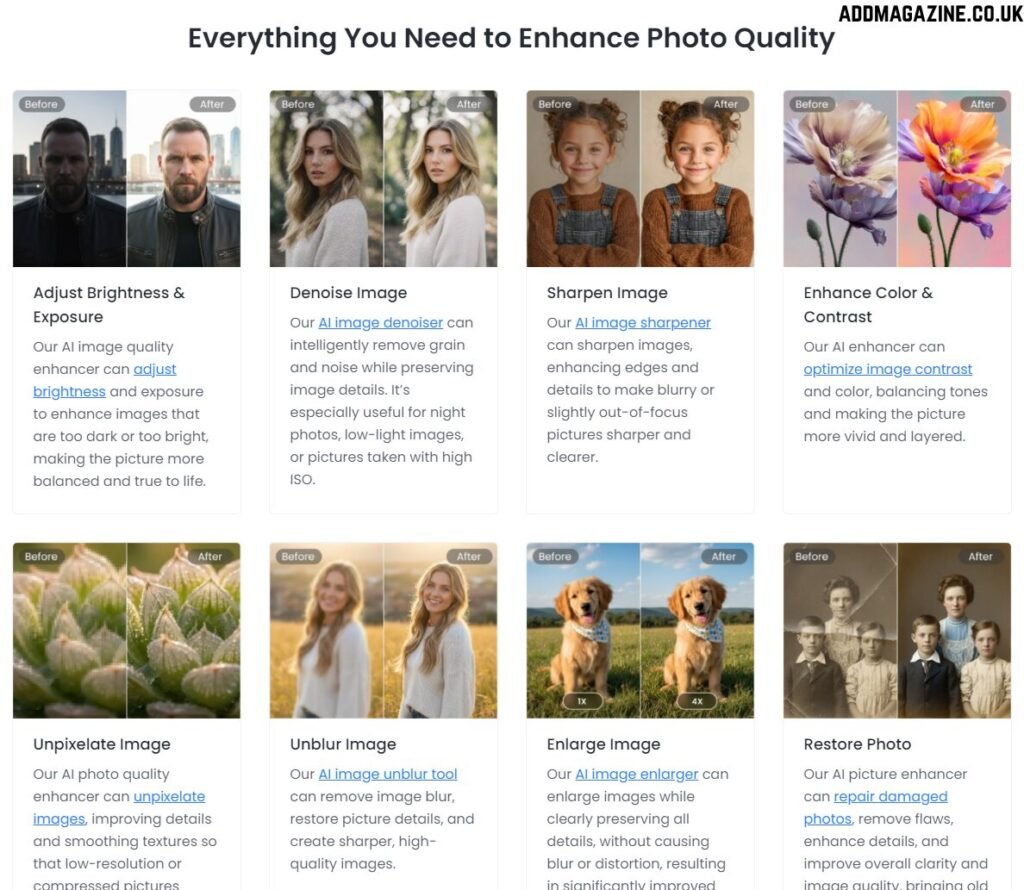 - It can boost product shots and social media pics by increasing clarity and color depth. High-quality images grab attention online, and it helps every photo meet common platform standards without any editing skills.